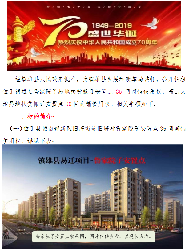 鎮(zhèn)雄縣易地扶貧搬遷魯家院子安置點、高山大地安置商鋪使用權拍租公告