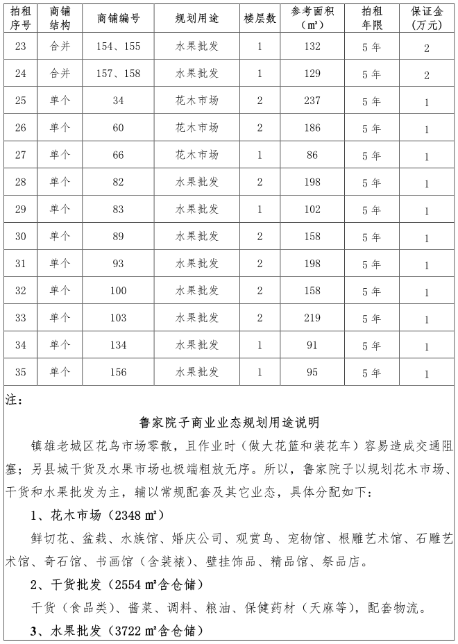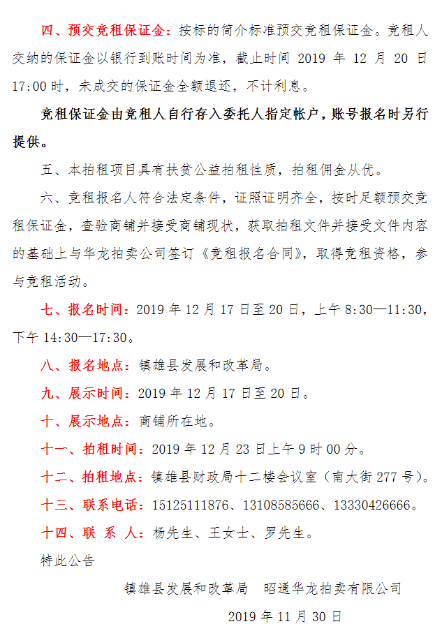 鎮(zhèn)雄縣魯家院子安置點商鋪使用權拍租公告