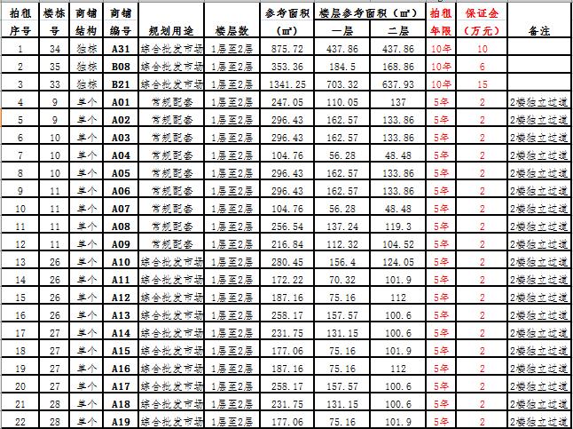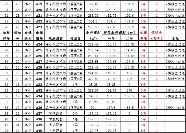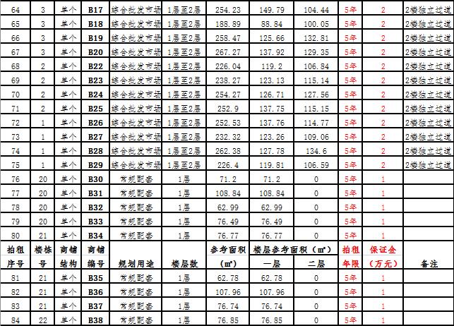 (三)拍租一層單個商鋪26 間,使用期5年,每間商鋪預(yù)交競租保證金1萬元, 詳見商鋪簡介(欲競租多間商鋪,保證金類推)。