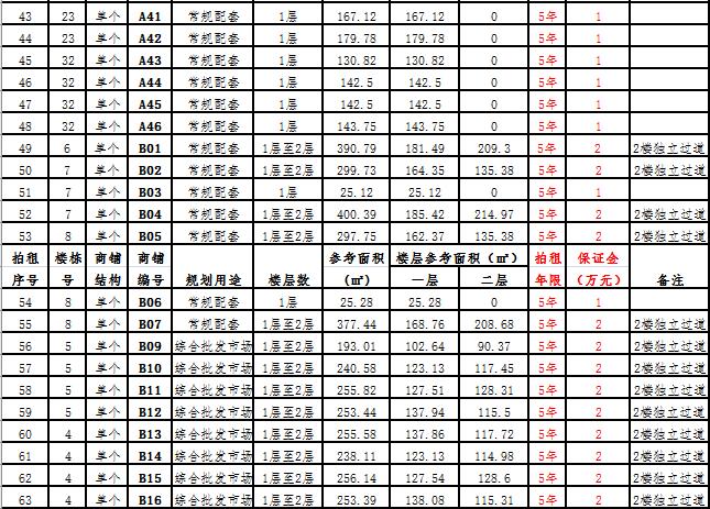(二)拍租一層至二層合并為一個商鋪58 間,使用期5年,每間商鋪預(yù)交競租保證金2萬元, 詳見商鋪簡介(欲競租多間商鋪,保證金類推)。