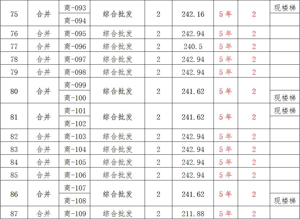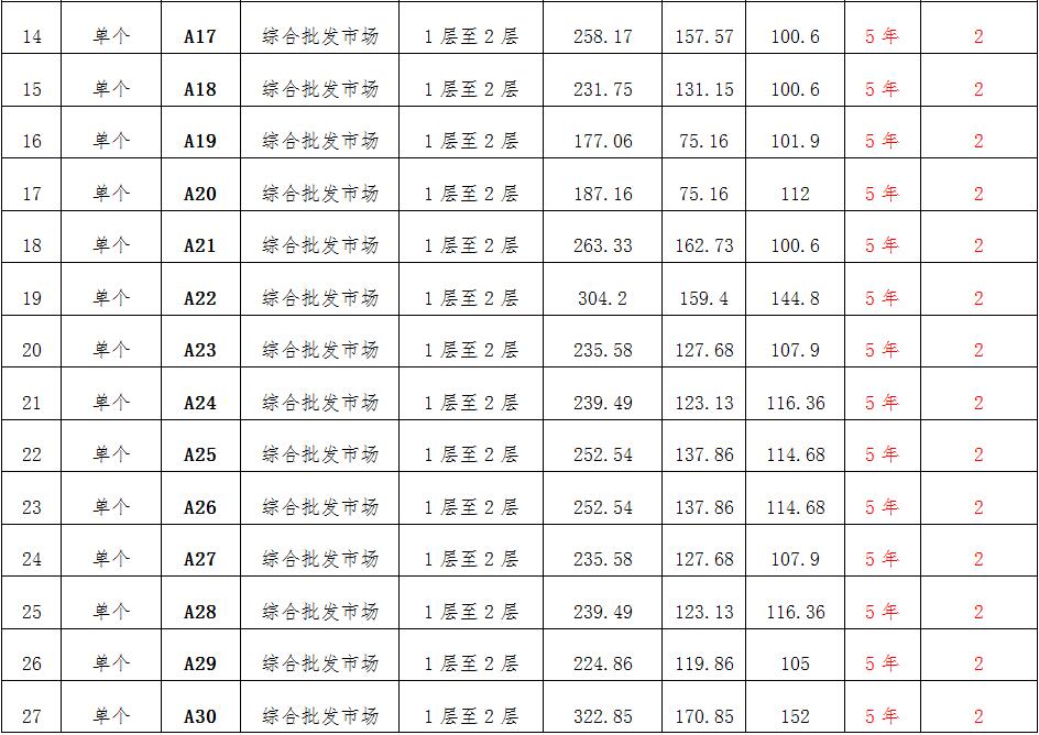 (一)拍租位于鎮(zhèn)雄縣南臺街道呢嚕坪安置點7棟獨立商鋪使用權(quán)。以棟為單位拍租。詳見下表: