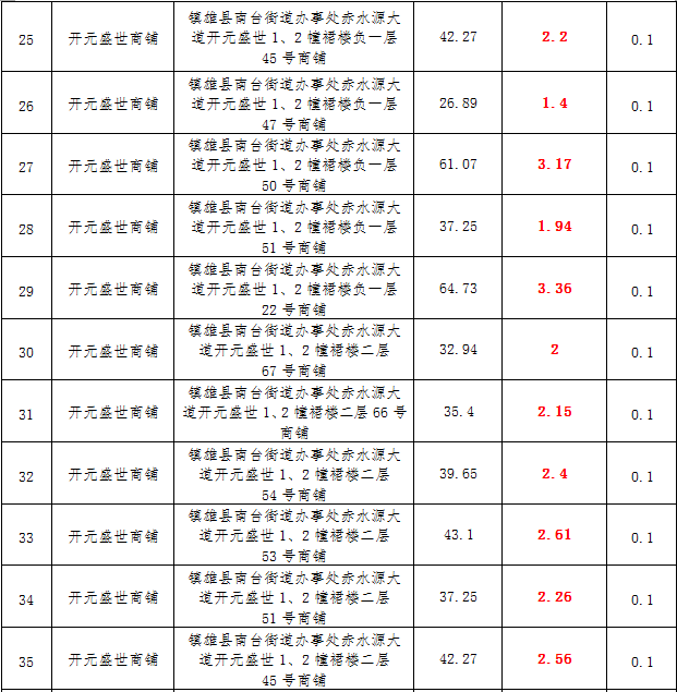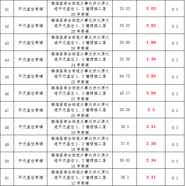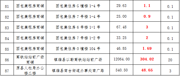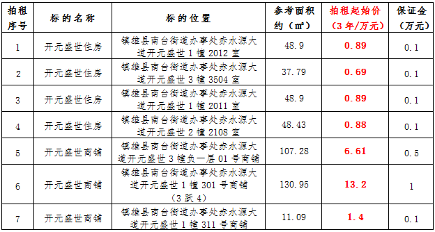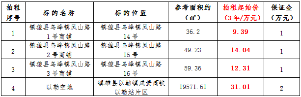 (一)拍租鎮(zhèn)雄發(fā)展集團(tuán)有限公司國有門面3年期使用權(quán),詳見下表: