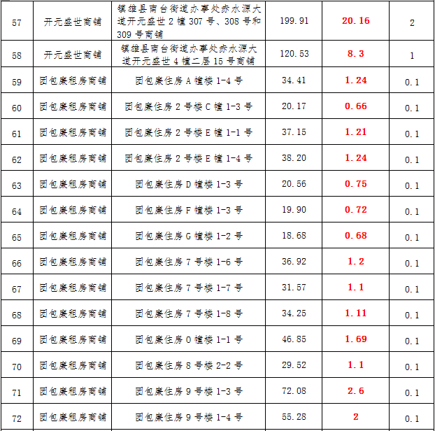 (三)拍租鎮(zhèn)雄縣城市運(yùn)營管理有限公司國有門面3年期使用權(quán),詳見下表: