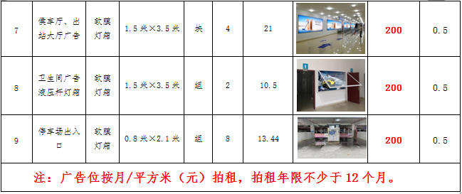 (六)拍租鎮(zhèn)雄縣開元商業(yè)物業(yè)服務(wù)有限公司以勒高鐵站站前廣場(chǎng)各類廣告位使用權(quán),廣告位分布、類型、規(guī)格及展示效果如下: