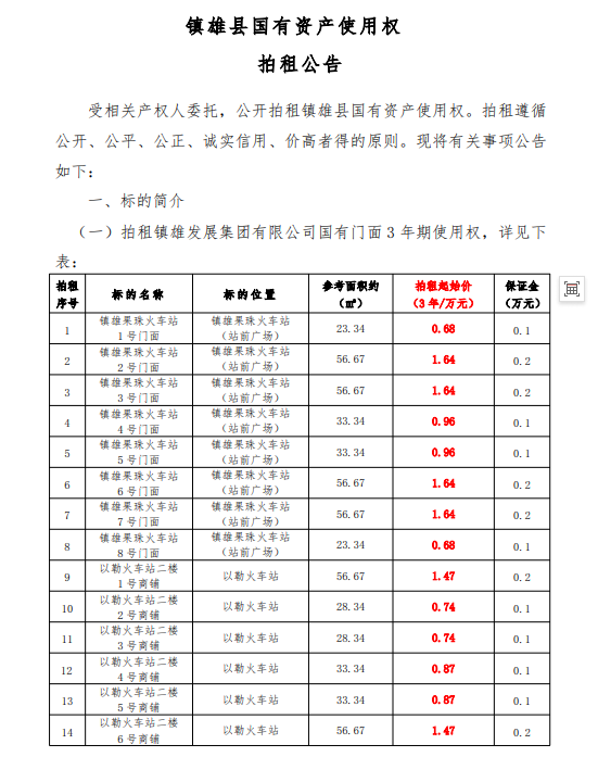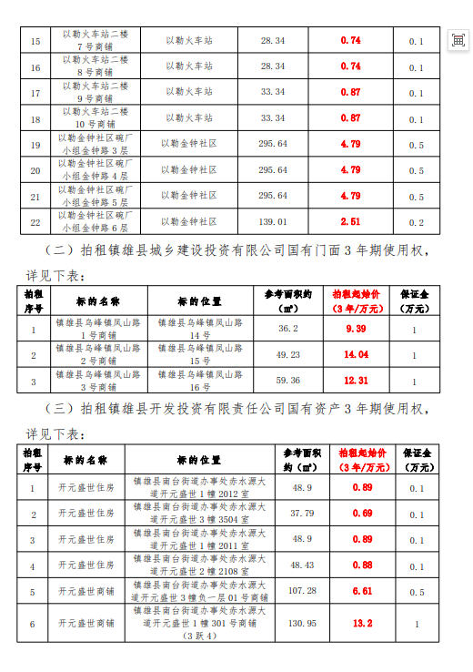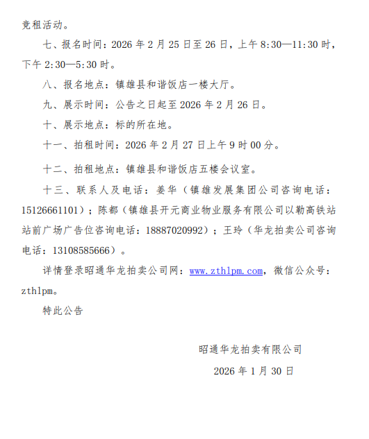 鎮(zhèn)雄縣國(guó)有資產(chǎn)使用權(quán)拍租公告